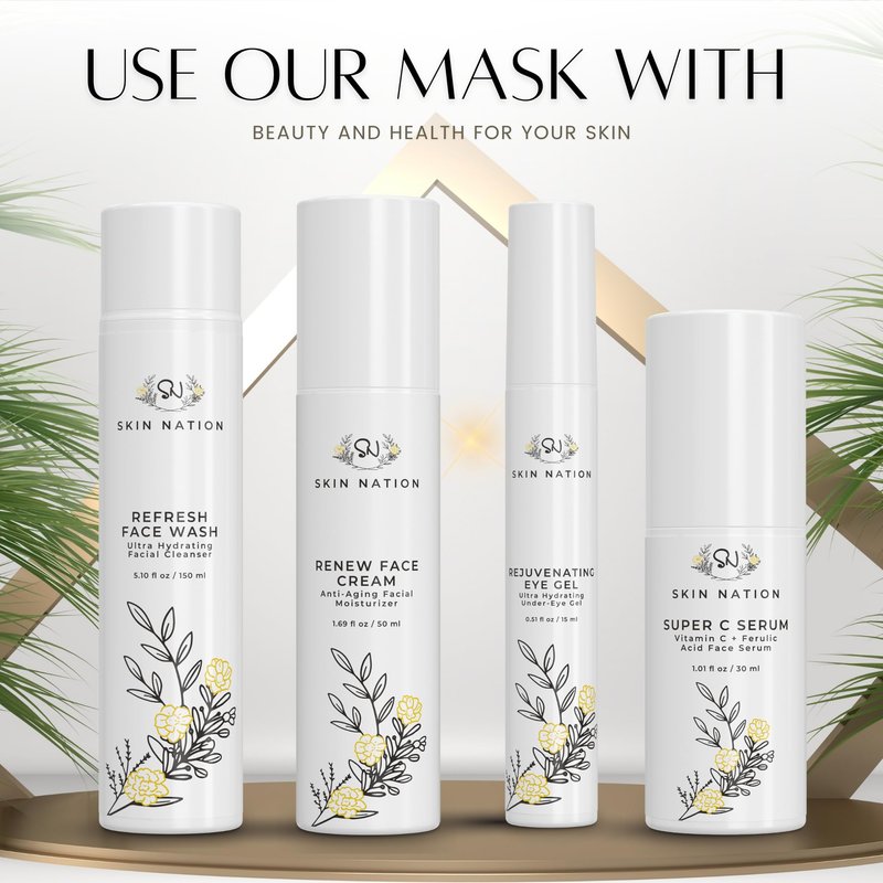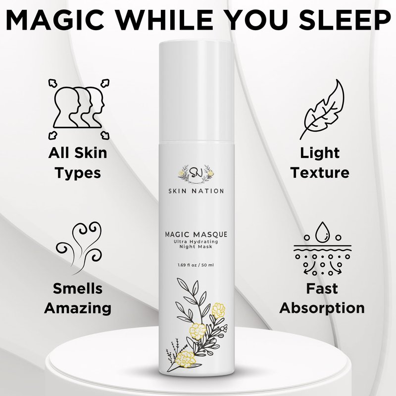 Experience the Magic of Skin Nation's Magic Masque Face Mask In the world of face mask skin care, finding the right products to pamper your skin is like discovering a hidden treasure. Skin Nation's Face Mask is that treasure you've been searching for. Packed with nourishing ingredients like vitamin E, hyaluronic acid, and aloe vera, this facial mask offers a luxurious experience that goes beyond the usual skin care routine. Vitamin E: Your Skin's Best Friend Vitamin E is a powerful antioxidant that nourishes and protects your skin. Skin Nation's Magic Masque Face Mask harnesses the benefits of vitamin E, making it a perfect addition to your skincare regimen. It helps maintain skin health and combats environmental stressors. Hyaluronic Acid Serum Dry skin is often the culprit behind premature aging and a lackluster complexion. This moisturizer contains hyaluronic acid, a potent moisturizing ingredient that deeply hydrates your skin, leaving it plump and radiant. Hylunaric acid serum also aids in reducing the appearance of fine lines. Aloe Vera's Soothing Embrace Aloe vera is known for its soothing properties. Skin Nation's Magic Masque Face Mask features aloe vera, making it an excellent choice for those with sensitive skin. Aloe vera helps calm irritation, reduce redness, and provides a refreshing and rejuvenating experience. Pore Minimizer for Face If you're looking to refine and minimize your pores, this pore mask can work its magic. It serves as a pore cleaner helping to clear out impurities and tighten your pores, leaving your skin with a smoother, more even texture. Anti-Aging Elegance As an anti-aging serum, Skin Nation's Magic Masque Face Mask helps reduce the signs of aging by promoting hydration, reducing fine lines, and leaving your skin looking more youthful and revitalized. Hydrating Serum While this face mask works its magic, it also provides essential hydration and moisturization and helps your skin retain moisture, leaving it refreshed and radi