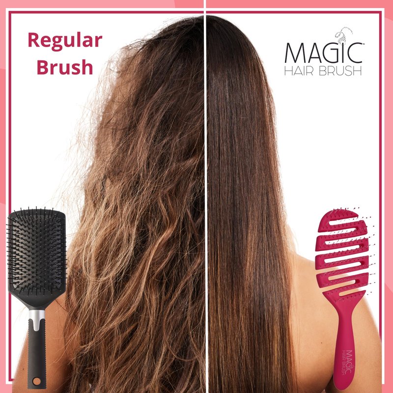 Magic Hair Brush Detangler – the difference is magical! This Professional Magic Hair Brush Flexible Vented hair brush is the gentlest and quickest way to detangle your hair. The style and softness of the bristles with the flexible head, allows you to brush effortlessly through the hair without snagging or pulling. We are delighted to bring the new colorful brush range to match the different aesthetics in your life. Easy to distinguish from other Brushes in the same household, gym, office, apartment, dorm, and all the other places you take your hair products. This Hairbrush is designed to quickly detangle your hair with unique soft touch flexibility and stability in mind. We wanted to make a multipurpose hairbrush for the different styles of your life. Whether you are straightening, dying, blow drying, curling, or more, we wanted to give you the option for a brush that fits your needs. Our brushes come with a travel case to keep your brush and your hair protected from the outside elements and getting dirty.
