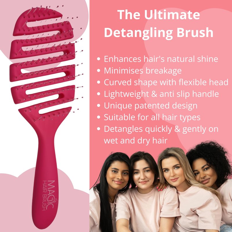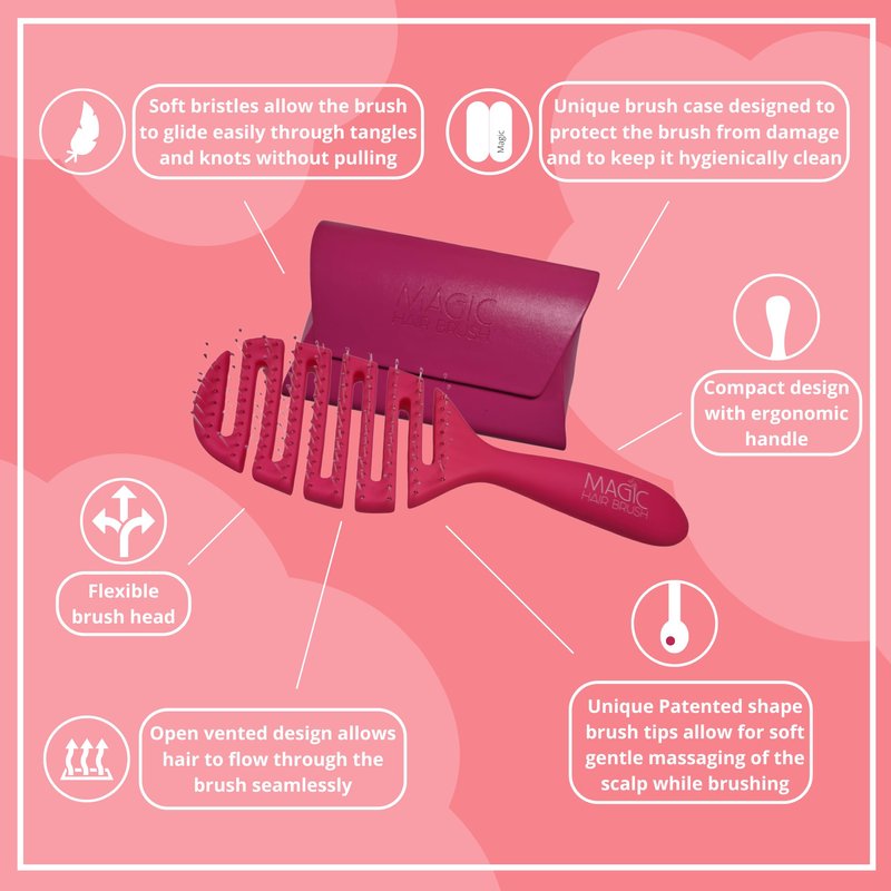 Magic Hair Brush Best Hair Detangler with Storage Wallet Soft Bristles Flexible Vented Head Glide Easily Through Tangles and Knots (Pink Classic - EXP 248)