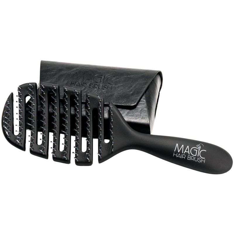 Magic Hair Brush Detangler – the difference is magical! This Professional Magic Hair Brush Flexible Vented hair brush is the gentlest and quickest way to detangle your hair. The style and softness of the bristles with the flexible head, allows you to brush effortlessly through the hair without snagging or pulling. We are delighted to bring the new colorful brush range of black, blue and sport green to match the different aesthetics in your life. Easy to distinguish from other Brushes in the same household, gym, office, apartment, dorm, and all the other places you take your hair products. This Hair Brush is designed to quickly detangle your hair with unique soft touch flexibility and stability in mind. We wanted to make a multipurpose hair brush for the different styles of your life. Whether you are straightening, dying, blow drying, curling, or more, we wanted to give you the option for a brush that fits your needs. Our brushes come with a travel case to keep your brush and your hair protected from the outside elements and getting dirty.