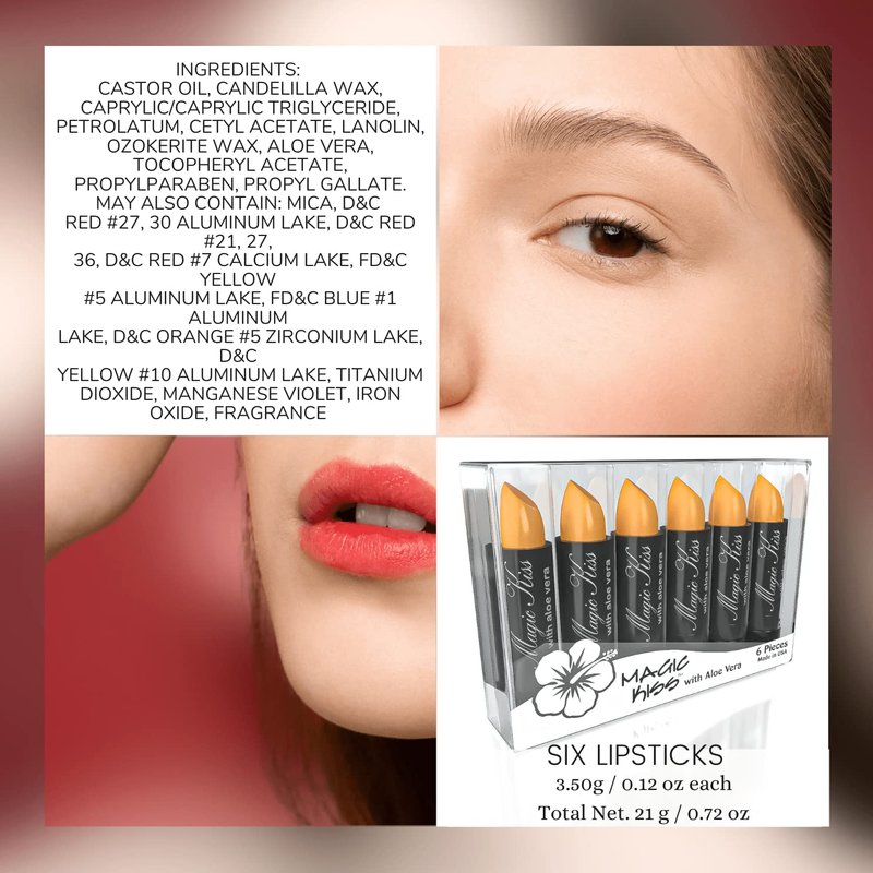 Magic Kiss Lipstick has been a very popular seller for over 30+ years. Helps to protect your lips with Aloe Vera and Long Lasting. Also does not come off easily, great for beach and pool days.