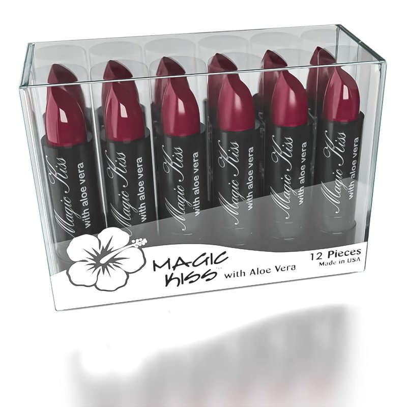Magic Kiss Pack of 12 Color Changing Aloe Vera Lipstick set, MADE IN USA (Purple)