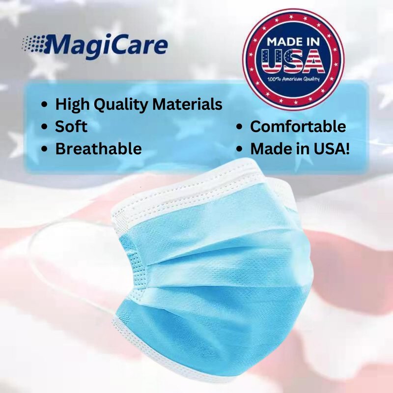 MagiCare Made in USA Masks - Blue Disposable Face Masks - Medical Grade (ASTM Level 1) - Premium 3 Ply Face Masks Disposable - Comfortable, Soft, Breathable Face Mask for Adults - 50ct Box