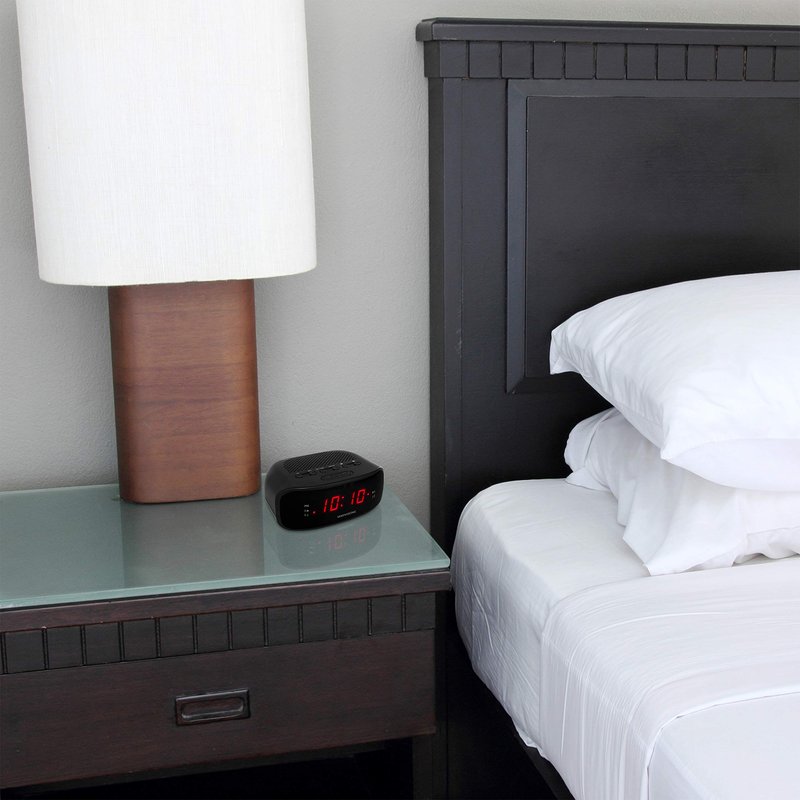 - Pre-programmable daily dual alarm for you and your partner - wake to radio or buzzer