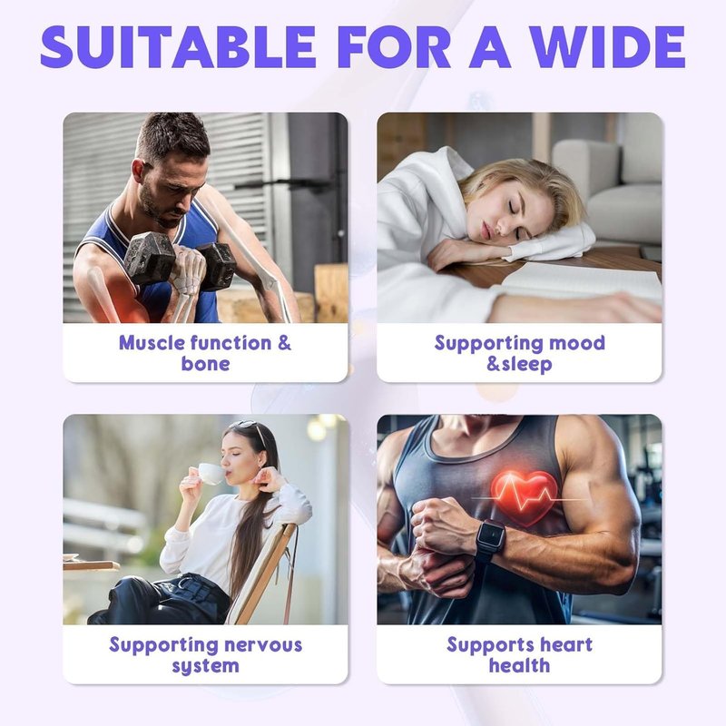 - Muscle & Bone Health: Magnesium is key in supporting healthy muscle contraction and bone structure. This blend aids in maintaining flexibility, comfort, and overall physical function—perfect for staying active and mobile.