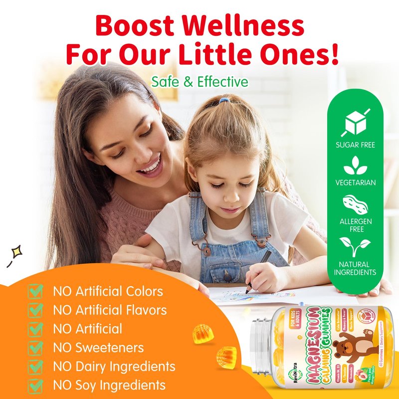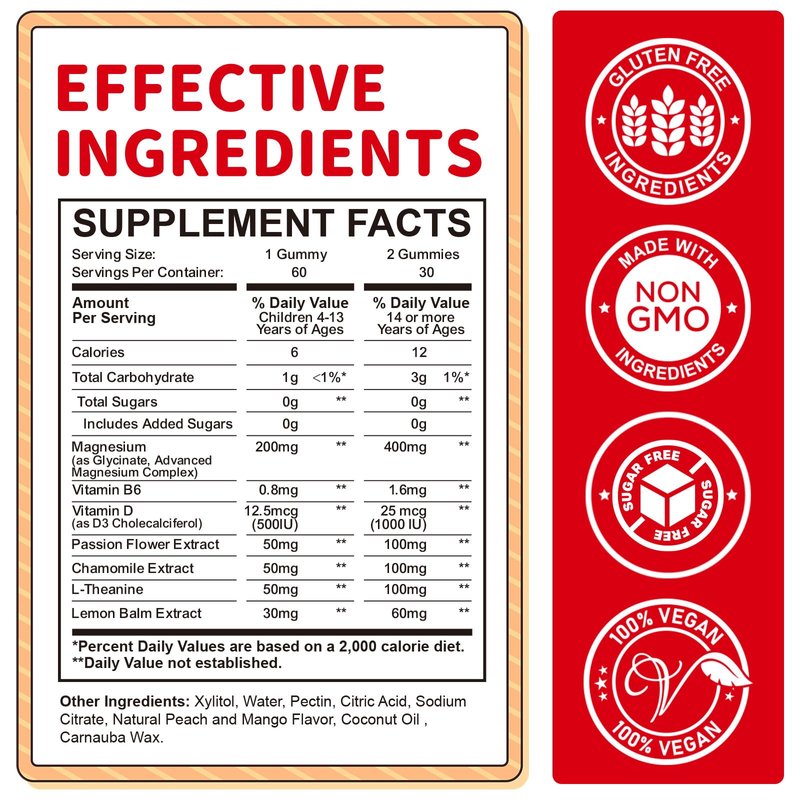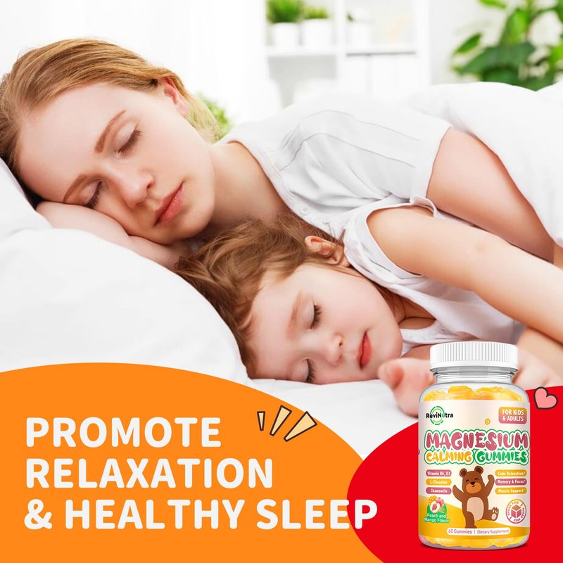Magnesium Gummies for Kids - Magnesium Glycinate Gummies with L-Theanine, Vitamin B6, D3 for Kids & Adults Sleep, Calm, Relaxation, Stress, Brain, Bones, Muscle Relief, Sugar Free Peach & Mango 60ct