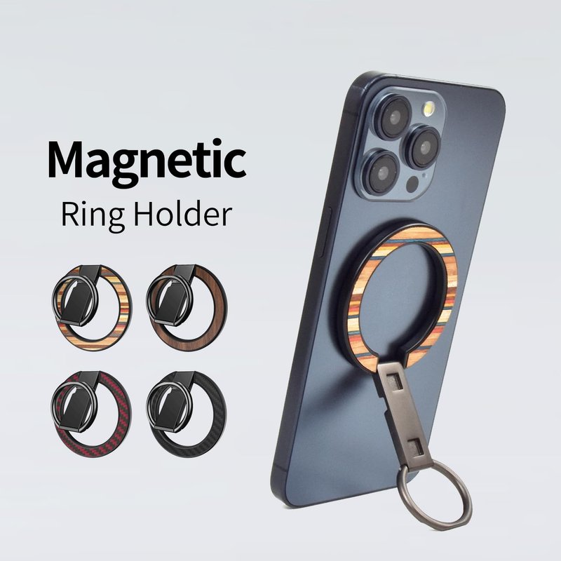 - 【High Quality Material】 - The finger ring kickstand is made of high-quality zinc alloy and 100% natural wood (walnut). Zinc alloy has good ductility and features ruggedness, which contributes to a long lifespan. Polished ring holder, smooth edge, no worries of scratches to your fingers. The surface is polished delicately, with exquisite craftsmanship. Walnut wood has different textures, making it more unique and aesthetically pleaing, giving it a more high-end and upscale appearance.