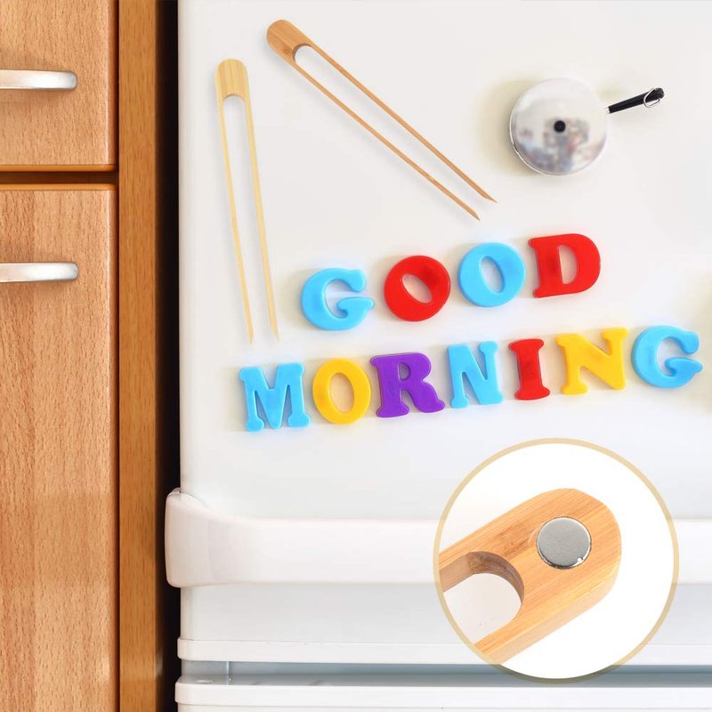 Magnetic Bamboo Toaster Tongs: 100% Natural 8.7” Wood Kitchen Toast Tongs| Eco-Friendly, Space Saving Modern Kitchen Accessory for Home Restaurant | Set of 2