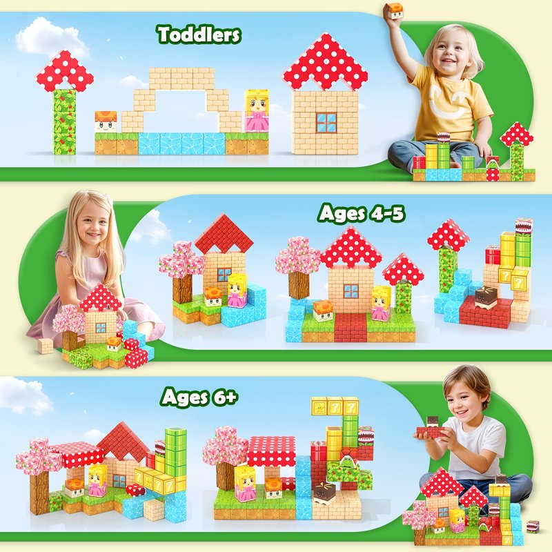 - BUILD MINE MAGNET WORLD: Let's go on an exciting journey with the 72pcs Magic Teleport Pipes Set! Here, kids can build cherry blossom trees and mushroom houses and cross grass and rivers to find surprises hidden within question blocks! What other adventures await us after going through the magic pipes? Let's explore together