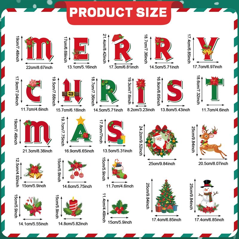 Features: Fun to DIY: These Christmas garage stickers need to be decorated by yourself. You can decorate it according to your liking, or you can DIY this Christmas decoration with your family and friends. The process of decorating will make you feel better about your holiday, you will feel happy. Different decoration size: These Christmas door magnet decors are in different sizes, small but with bright color, full of Christmas element and patterns, enough to play its decorative role, can attract people's attention, making your Christmas a more interesting festive. Specifications: Material: magnetic material Color: as shown in the pictures Size: as shown in the pictures Package includes: 27 x Christmas garage door magnets Notes: Manual measurement, please allow slight errors on size. The color may exist slight difference due to different screen display.