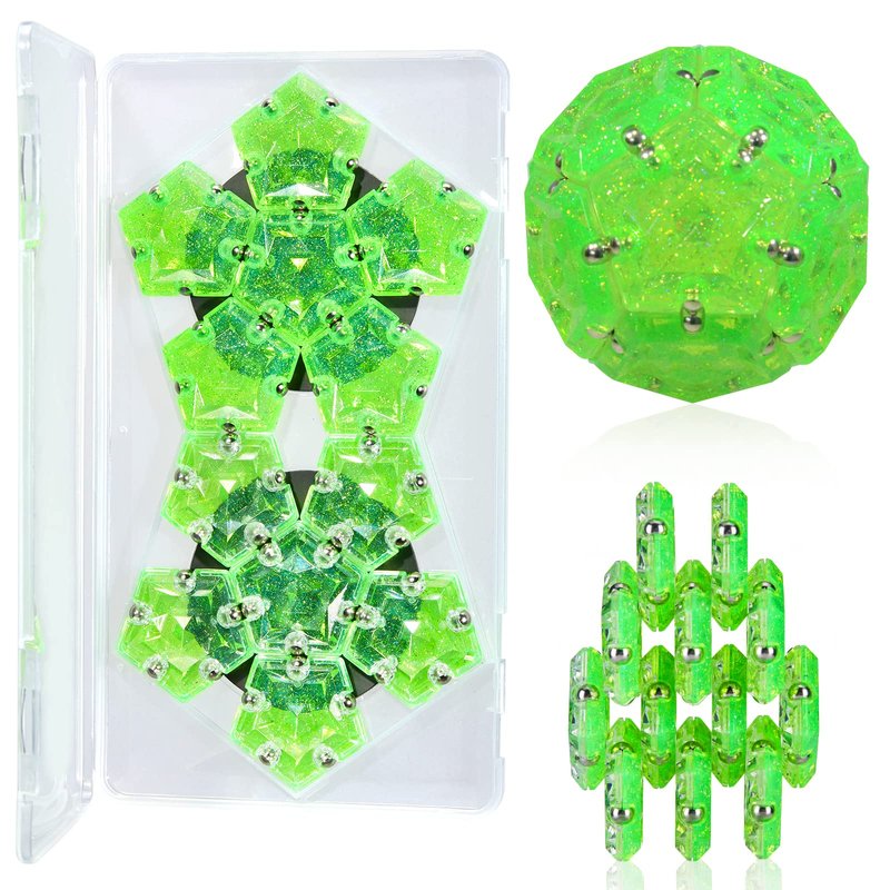 Magnetic Fidget Sphere Magnets Balls - Crystal Bright Green Holographic Glitter - Magnet Fidgets Toy - 12 Piece Set - Creativity Beyond Imagination, Inspirational, Recreational, Desk Toys for Adults