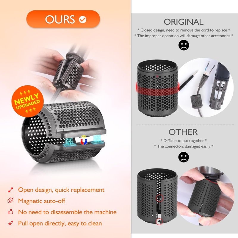 - Reasons for Replacement: Our hairdryer attachment is equipped with an upgraded magnetic filter cover, ensuring improved performance and efficient airflow. The convenient magnetic opening design allows you to easily detach and clean the internal filter, removing hair, dust, and pollutants. Stop struggling with clogged filters and get the magnetic hair dryer filter that makes maintenance a breeze