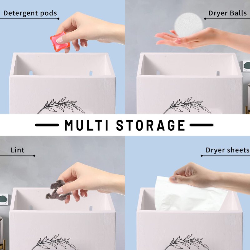 - ✅【Wide Applications】:Not only can you use lint bin as a trash can,put dryer lint, hair, and other laundry garbages,but also as a storage box for detergent soap pods. Dryer sheet holder can contain both dryer sheets and balls.