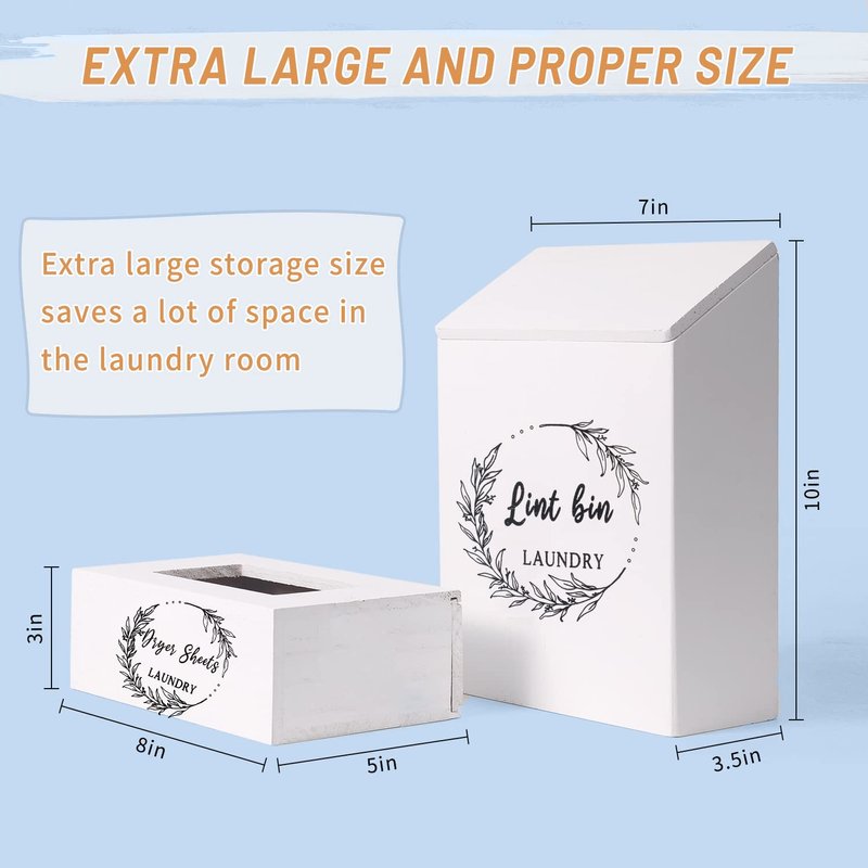 - ✅【 Amazing Gift Idea 】:This dryer sheet holder and lint bin sets are made with lots of love, the rustic look makes it get along well with almost all laundry room styles. Best gift idea for parents, wife/hunsband, daughter and friends. Perfect storage for laundry room or tabel where space is limited. It is the best choice to save space and solve storage problems. Get this wood dryer sheet dispenser organizer and say goodbye to chaos.