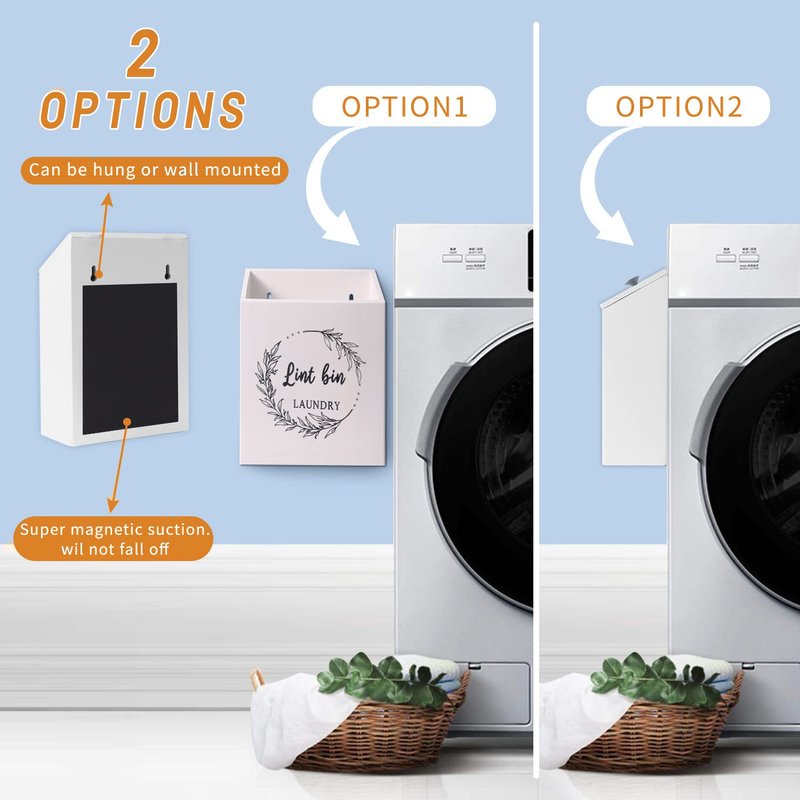- ✅【Stylish Space-saving Duo】:Stylish magnetic lint trash can with lid and dryer sheet holder set for Laundry room. It is perfect fabric softener dispenser for laundry room with great looking, practical and amazing quality.hook magnets are given to you as a gift.