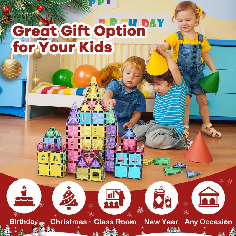 - Great Gift Optiony for Your Kids - Magnet building blocks are suitable for any festivals and occasions, like birthdays, Christmas, Easter, Preschool, Day Care Centers, and so on. Perfect for a collaborative group activity or school classrooms, preschool classrooms, kindergarten classrooms, outdoors toys, and teacher supplies classroom supplies