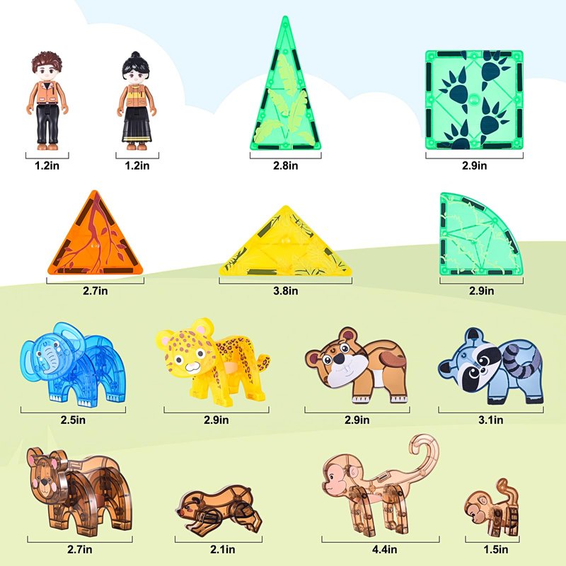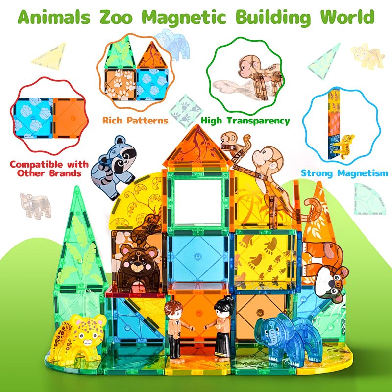 - [ Build Your Natural World ] : Let's Explore this Animals Zoo with your kids, which includes vivid magnetic blocks that could assemble cute Animals, Trees, Houses,Treehouse, Cabin, Castles and others. Imaging that run, climb and play with those novely animals in this Vast Forest. Dream More, Build Grandest!