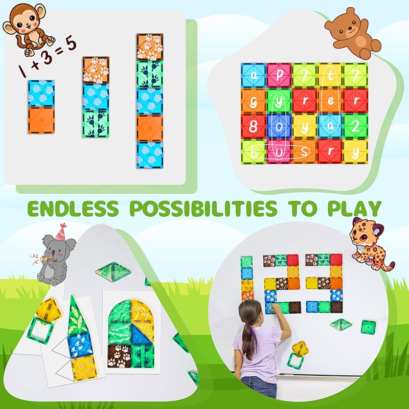 Magnetic Tiles Animals and Baby Family Set, Magnet Tiles Building Blocks for Toddler 3-5, STEM Learning Toy Early Education Construction Playset, Toy Gift for Kids 3 4 5 6 7