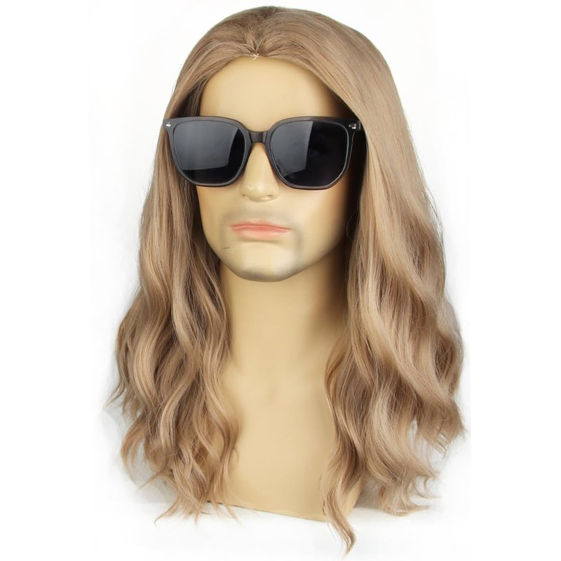 MAGQOO Blonde Wig for Men Long Curly Ash Blonde Wig Dirty Blonde Cosplay Costume Wig
