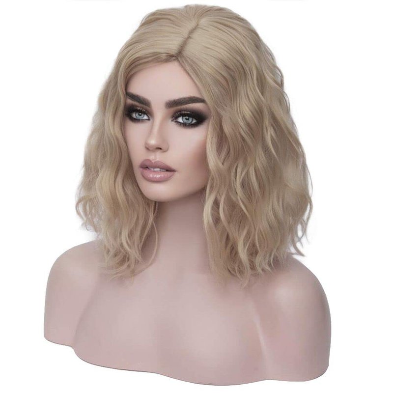 MAGQOO Blonde Wig Women Girls Short Curly Wavy Blonde Hair Wigs Blonde Bob Wig Synthetic Heat Resistant Cosplay Costume Wigs