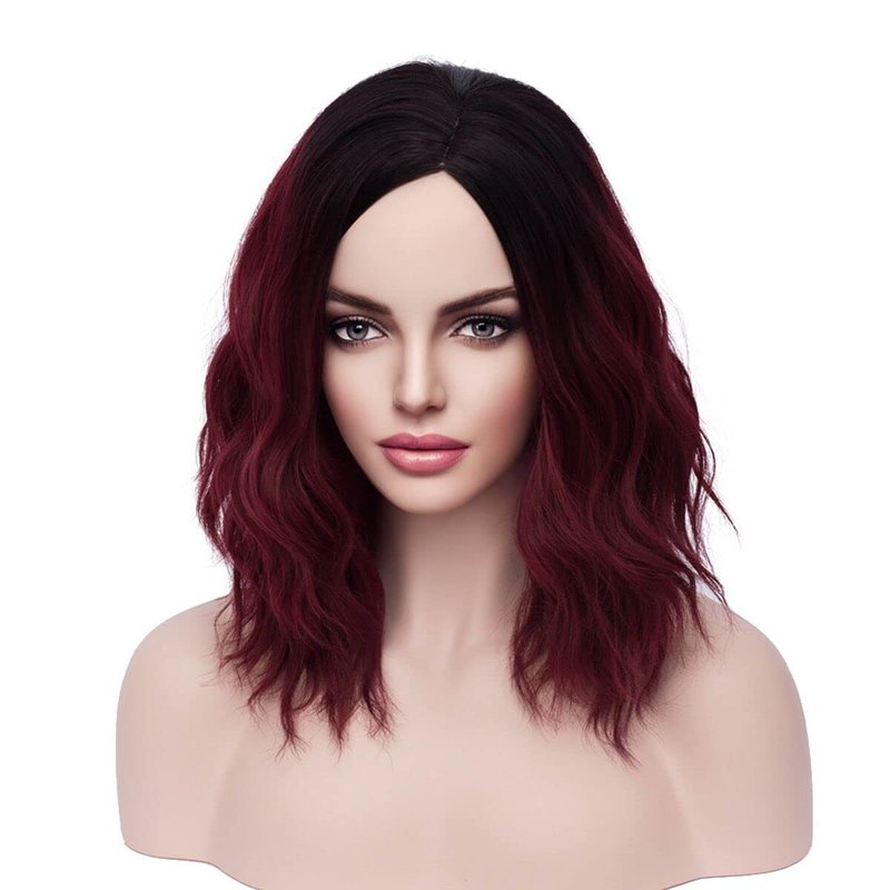 MAGQOO Burgundy Wig Wine Red Wig Side Part Dark Roots Burgundy Wig for Women Short Curly Wavy Dark Red Wigs Ombre Burgundy Synthetic Heat Resistant Wigs