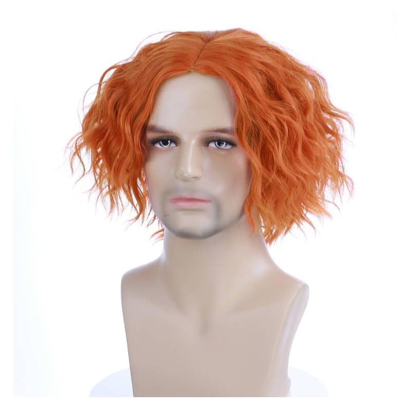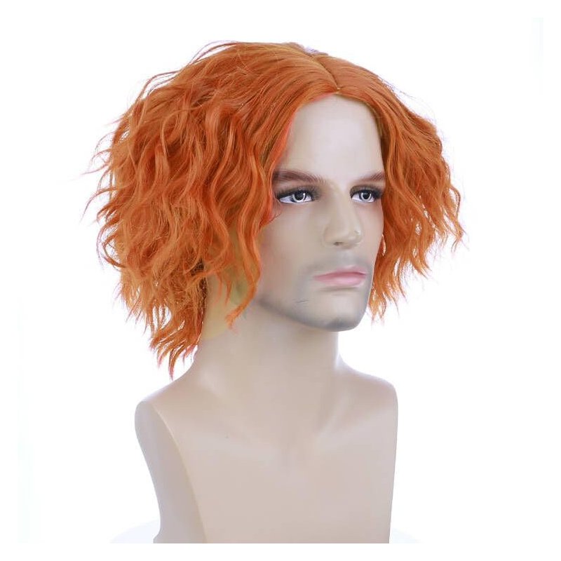 MAGQOO Mens Orange Wig Short Curly Spiky Mad Wig Synthetic Heat Resistant Cosplay Costume Wigs