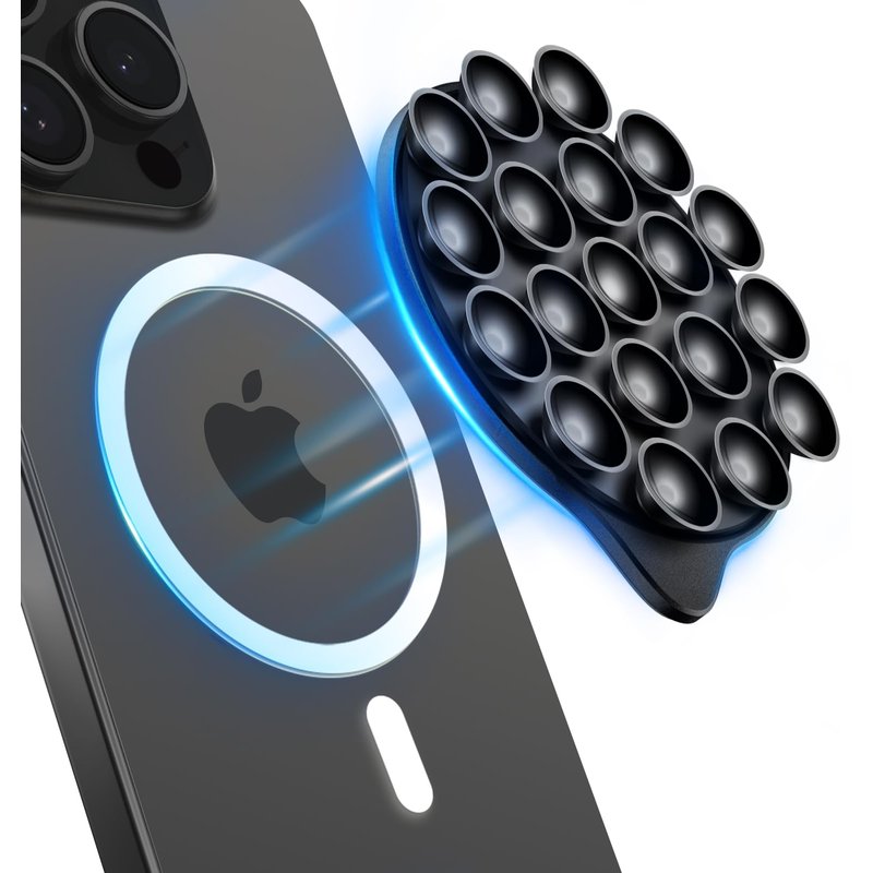 - [Super Strong Suction] The MagSuction silicone suction cup Hands-Free Phone Holder boasts 19 individual suction cups, each 13mm in diameter. That's stronger and more reliable than other phone holders with only 10mm suction cups. It'll hold tight to any smooth surface, so you can snap away without worrying about it falling off while capturing amazing photos.