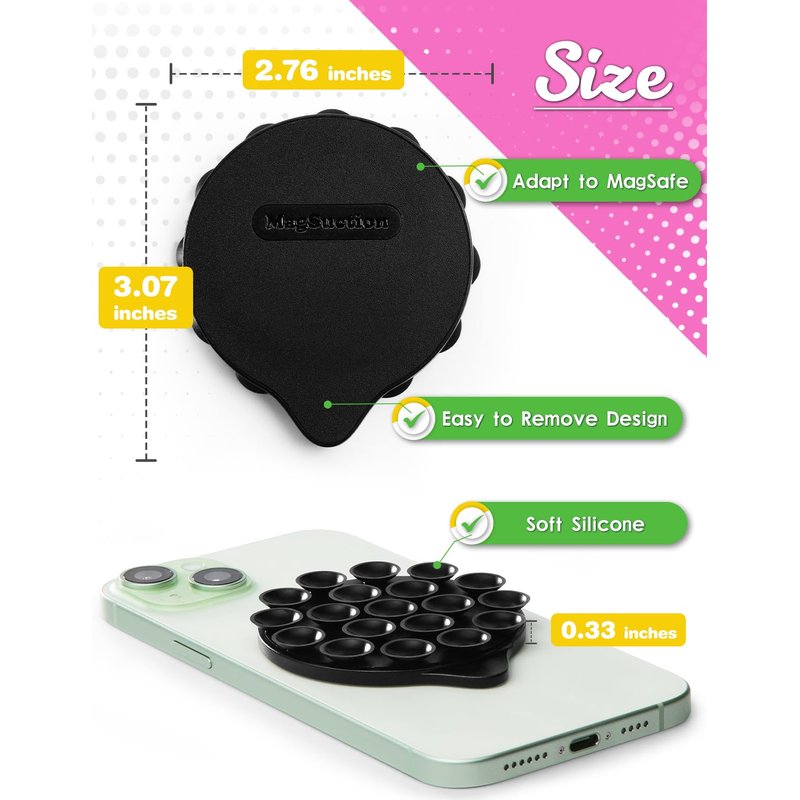 - [Designed for MagSafe] The innovative Cute MagSuction silicone suction cup phone holder is compatible with MagSafe, allowing for quick installation and a strong magnetic grip on any MagSafe-enabled phone or MagSafe phone case. It can be easily detached without leaving unsightly adhesive residue, making it reusable!
