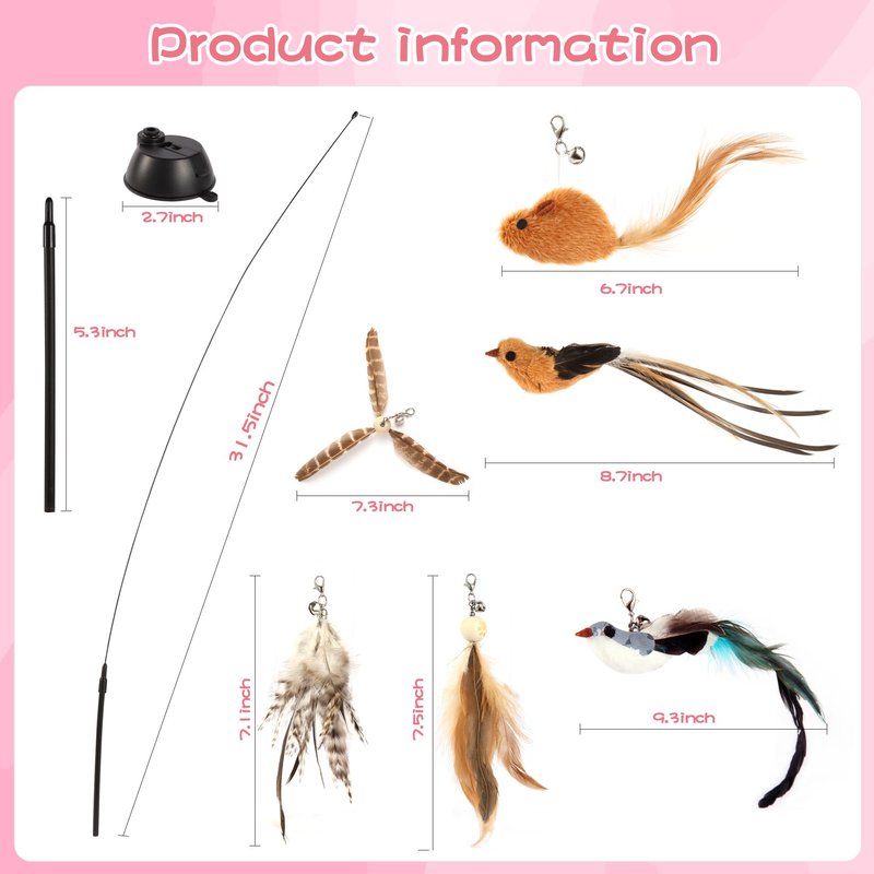 - [Express Natural Hunting Instincts]- A bored cat that sleeps all day is an unhealthy cat.It's important to provide them with stimulating toys they can use even if you're not there.This cat toy set will catch your cat's eyes and attention to provide exercise and stimulation.Keeping your cat entertained also prevents destructive behaviors.