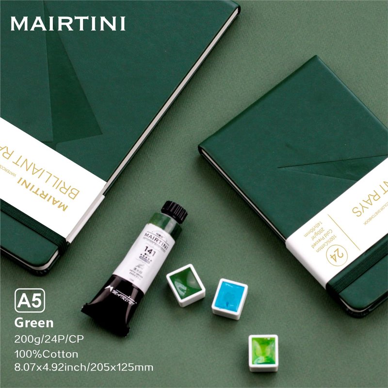 Mairtini Academy Grade Brilliant Series Pure Cotton Portable Watercolor Journal 200g Watercolor Pad 24 Sheets A6(Green)