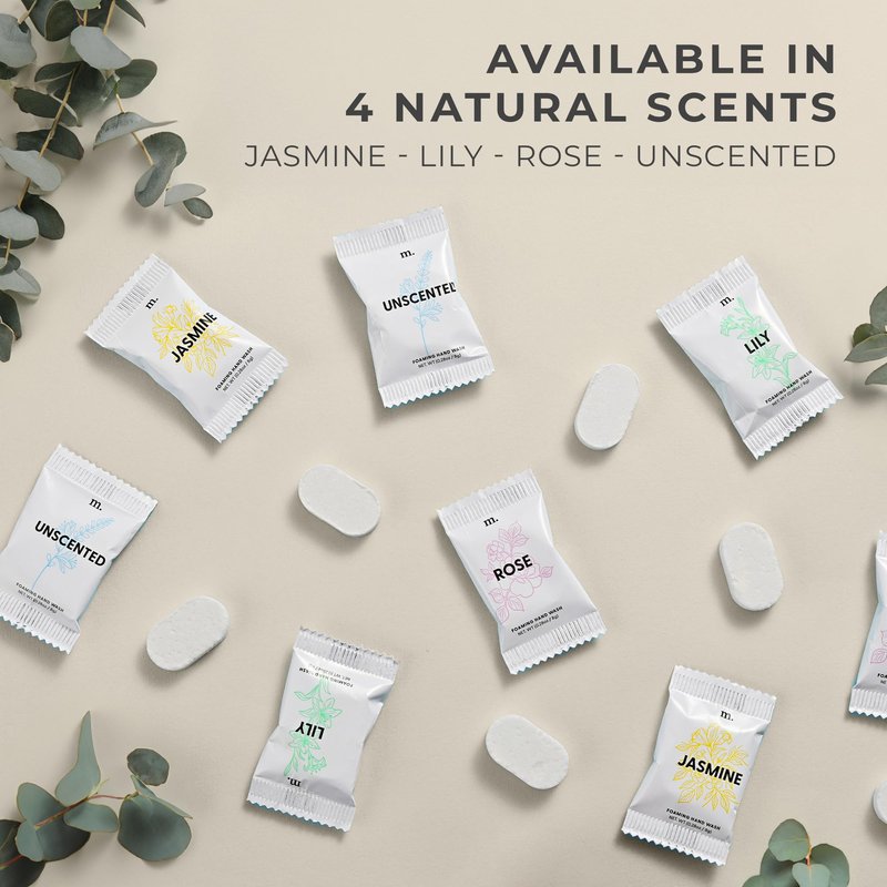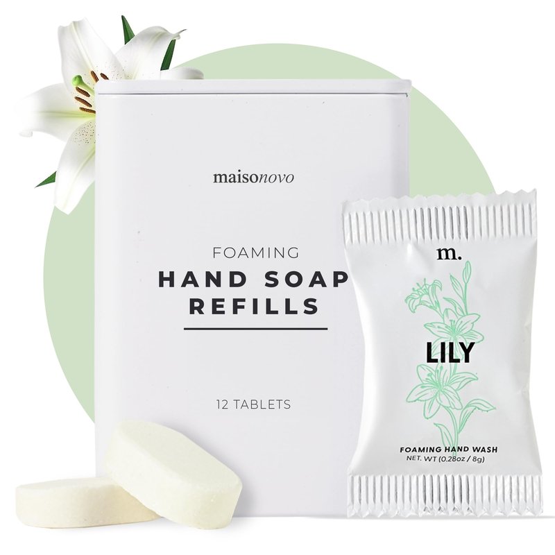 - This Pack Includes: 12 pack lily scented foaming hand soap refill tablets. Also comes in jasmine, rose and unscented; check our store for more. Each hand soap foam refill tablet lasts 6 to 8 weeks on average.