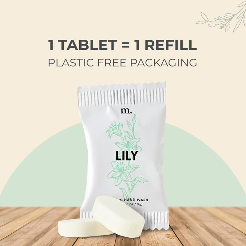 - THIS PACK INCLUDES: 4 pack LILY scented foaming hand soap refill tablets. Also comes in JASMINE, ROSE and UNSCENTED; check our store for more. Each hand soap foam refill tablet lasts 6 to 8 weeks on average.