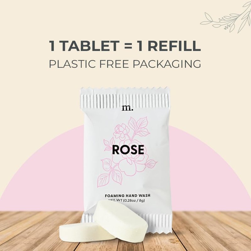 - THIS PACK INCLUDES: 4 pack ROSE foaming hand soap refill tablets. Also comes in JASMINE, LILY and UNSCENTED; check our store for more. Each hand soap foam refill tablet lasts 6 to 8 weeks on average.
