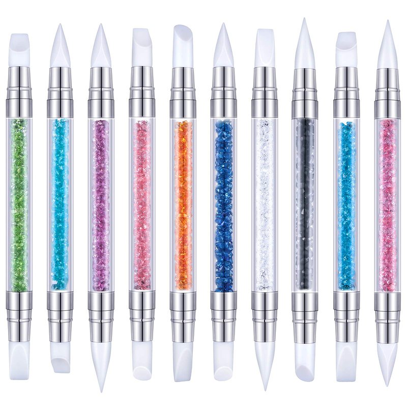 - Durable construction: our dual tipped silicone rhinestone nail polish carving pen is composed of clear acrylic tube, silver metal handle and white silicone heads, decorated with colorful crystal rhinestone inside the tube, durable and reliable material will not deform or corrode easily, able to support long-term service