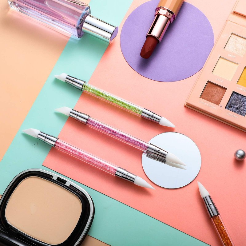Our dual tipped silicone rhinestone nail polish carving pen is composed of clear acrylic tube, silver metal handle and white silicone heads, decorated with colorful crystal rhinestone inside the tube, durable and reliable material will not deform or corrode easily, able to support long-term service.