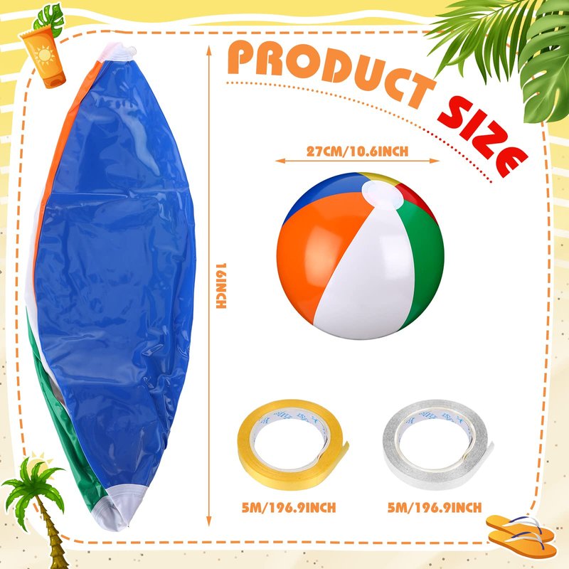 Maitys 12 Pieces of Beach Ball Decoration Rainbow Beach Ball with Hanging Rope and Hooks Inflatable Pool Ball Blow up Sport Ball for Summer Games Hawaiian Party Ornament