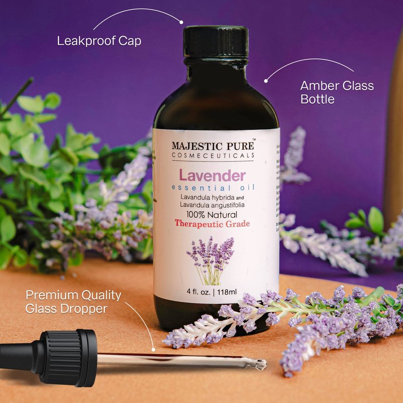 MAJESTIC PURE Lavender Essential Oil with Therapeutic Grade, for Aromatherapy, Massage and Topical uses, 4 fl oz