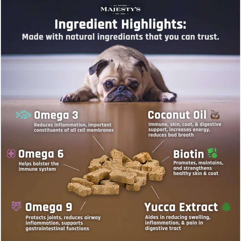 Majesty's Buddy Bites Skin and Coat Wafers for Small / Medium Dogs - Superior Skin, Coat, and Immune Support Supplement - Peanut Butter and Coconut Oil Flavored - 1 Pack (28 Count)