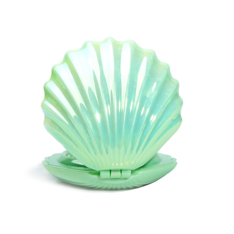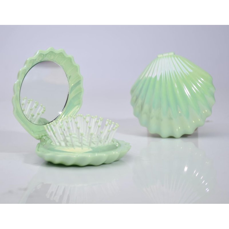 Maji Mama Foldable Travel Hair Brushes with Mirror Shell Shape Portable Folding Pocket Hair Brush Mini Hair Comb Compact Size Hair Massage Comb (Green)