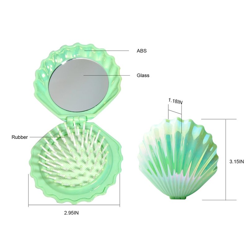- ✔ PERFECT DESIGN:This foldable hairbrush with mirror is designed as a beautiful shell shaped appearance,and its surface has been treated with illusion electroplating craft, makes it has a shiny finish with anti-scratch effect.The moment you got it, you will be amazed by its excellent design.