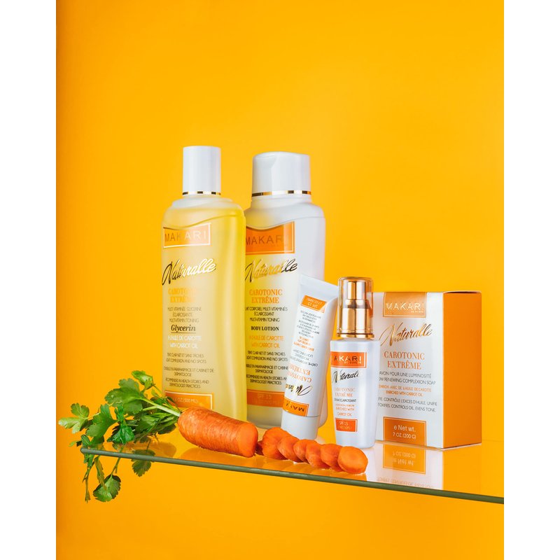 - GENTLE SKIN BRIGHTENING: Makari Carotonic Extreme Body Lotion is a gentle skin brightener with moisturizing botanicals. Balance your skin tone by increasing radiance and restoring overall vibrancy.