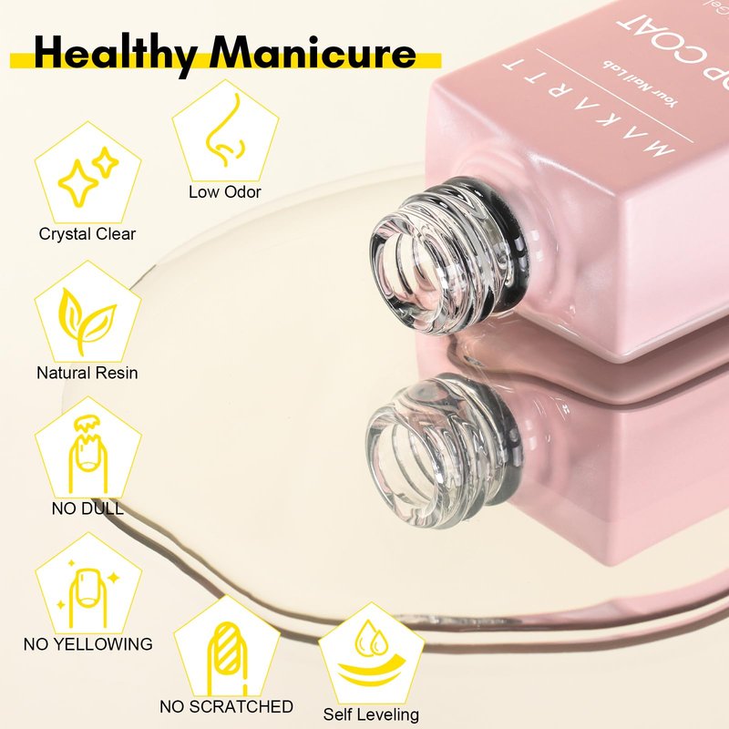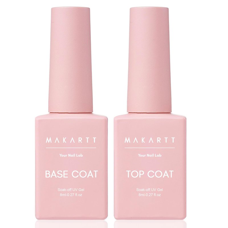Makartt Gel Top Coat and Base Coat Kit: Clear Gloss Shiny No Wipe Stain Resistant General Top Coat Nail Polish UV and Primer for Acrylic Nails Dip Powder Gel Nail Polish Beauty Gift