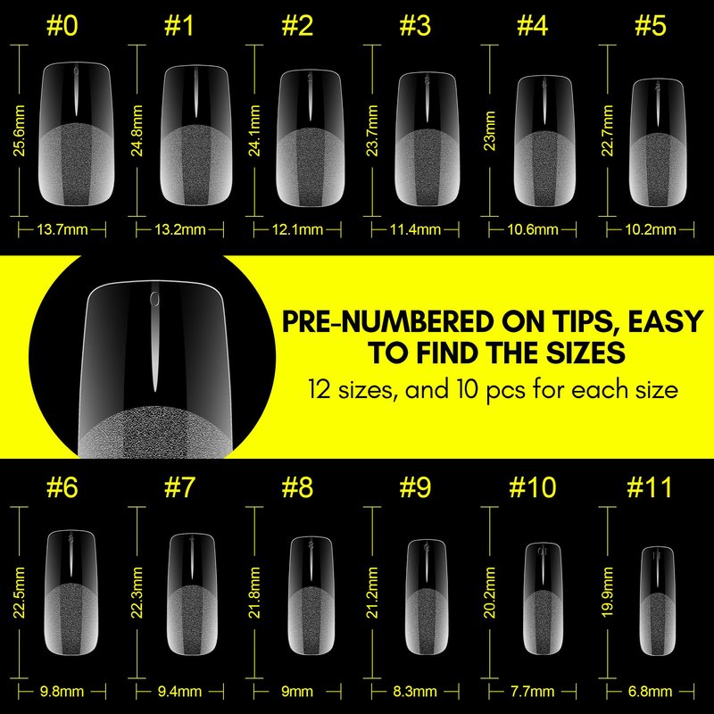 - ♥Multiple Application♥-These Full-cover nail tips are great for professional nail specialists at salons, , or at-home manicure DIY for nail art enthusiasts or beginners. You can apply gel nail polish, poly nail gel, dip powder, acrylic powder, liner painting gel or 3d sculpting gel on nail tips to create various nail art designs.