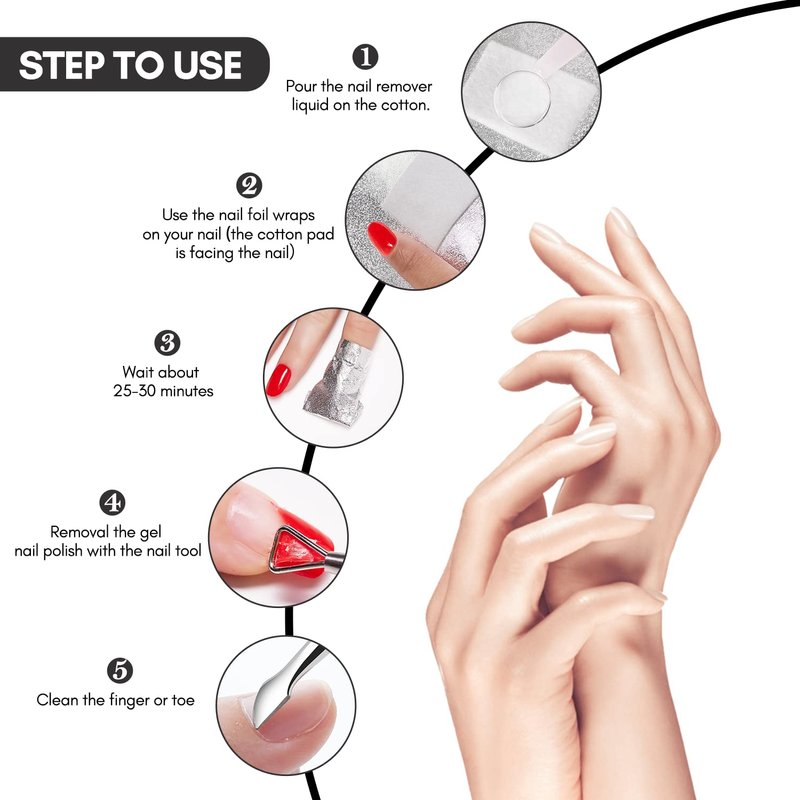 - Acetone Remover Not Included: These foil wraps are used with acetone to remove gel polish, nail polish, poly nail gel, acrylic powder, dip powder, and nail glue. Please note that acetone remover is sold separately.
