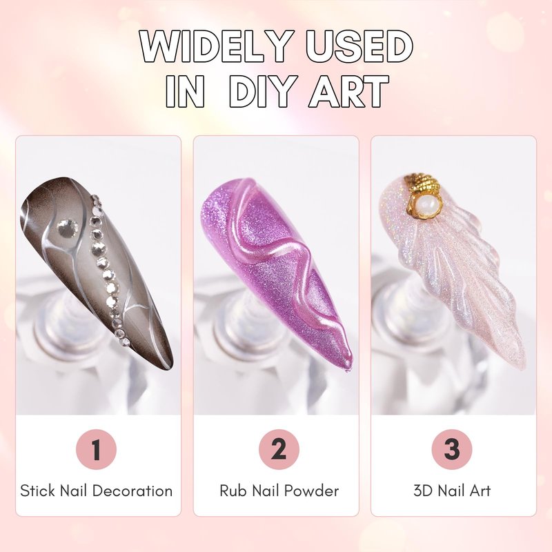 - EASY TO USE - The glue nail is convenient for use with tube design, easily to squeeze out as much as you need for nail art bling design, no mess! No spilling at all! Draw the pattern you want with mirror adhesive, apply a top coat, squeeze on nail adhesive glue, and place the diamonds on the squeezed adhesive diamond glue to cure.