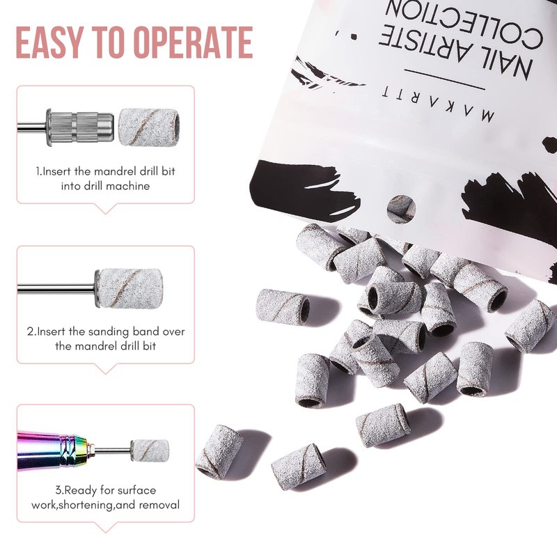 Makartt 100pcs Sanding Bands Set For Nail Drill Bits, #180 Medium Grits