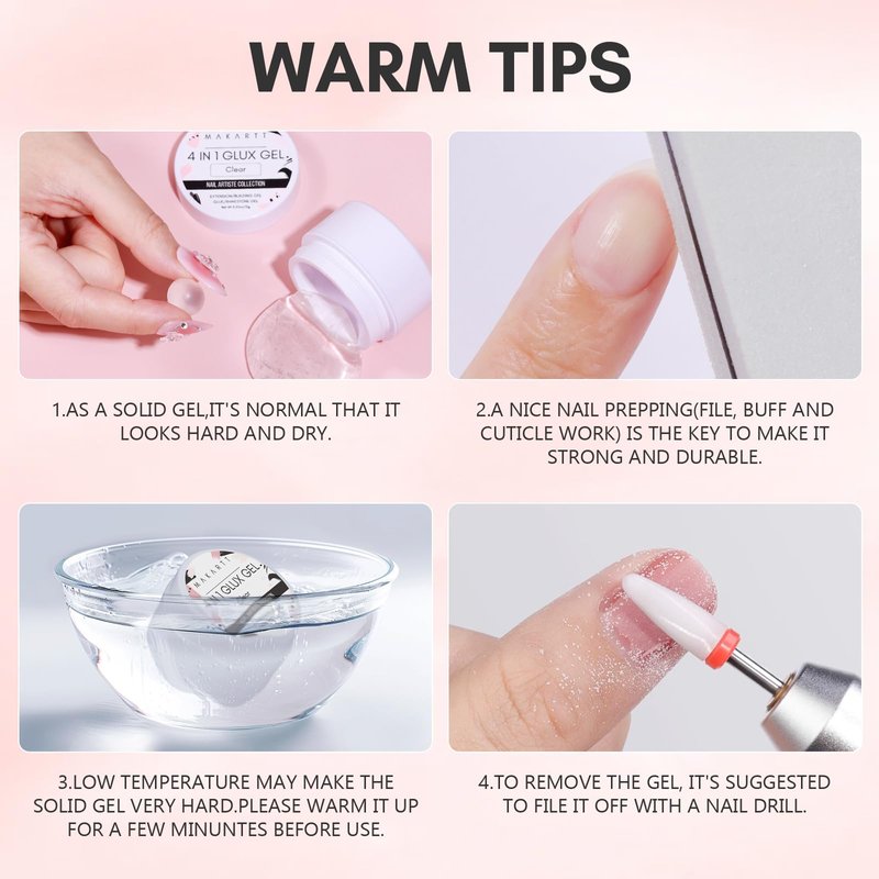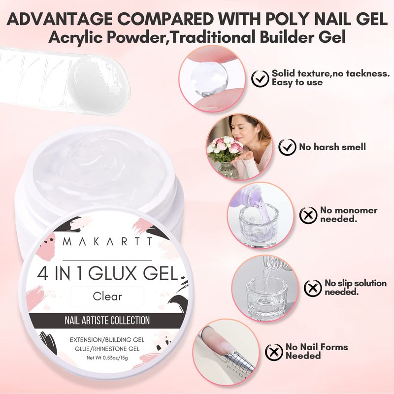- 4-in-1 Solid Builder Nail Gel-Makartt multifunctional solid gel builder for nails can be used as gel nail builder, nail extension gel, uv nail glue gel for soft gel nails, acrylic nails, gelly tips or clear press on nails, nail rhinestone glue gel and nail sculpture gel for 3D nail art decorations DIY.A money-saving builder nail gel for your professional or daily nail art