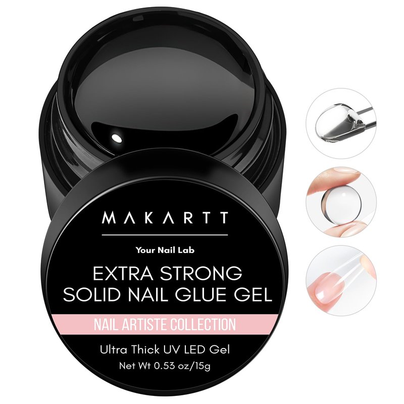 Makartt Solid Nail Glue Gel: Extra Strong Gel Nail Glue for Press On Nails and Nail Tips Long-Lasting Strong Adhesion Nail Glue for Acrylic Nails Clear Hard Gel for Nail Art Home Salon UV Light Cured