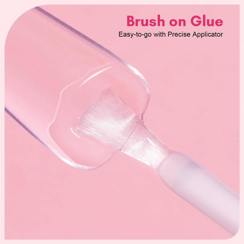 - Easy Application ,This Brush On Nail Glue Comes with Fine Precision Brush, Makes At Home Manicure Glue On Nails So Easy. Quick nail extension than gel builder nail extension , acrylic powder system or poly nail gel. No need for UV LED nail light curing