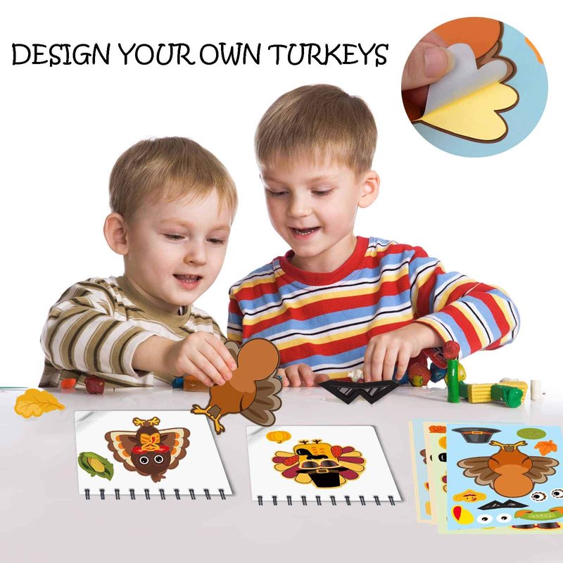 - 【PACKAGE INCLUDES】: 32 Make-A-Turkey sticker sheets. You will get 368pcs stickers in total. Kids can design as many as they can to enjoy their thanksgiving time.